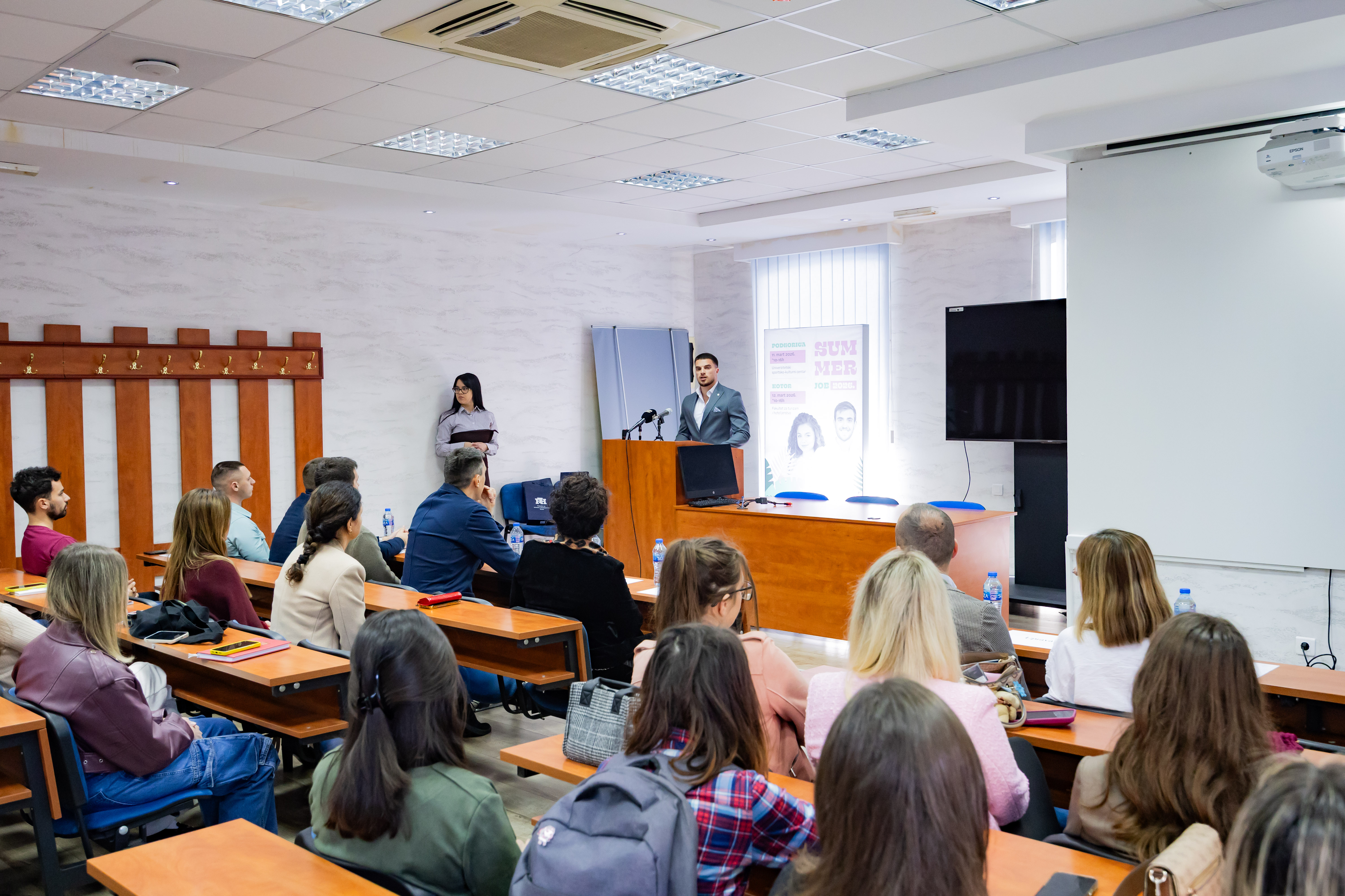 Nakon uspješno realizovanog 18. Sajma sezonskog zapošljavanja u Podgorici, Summer Job 2026. u organizaciji Studentskog parlamenta Univerziteta Crne Gore i Kancelarije za razvoj karijere i cjeloživotno učenje Univerziteta Crne Gore danas je realizovan u Kotoru u zgradi Fakulteta za turizam i hotelijerstvo.