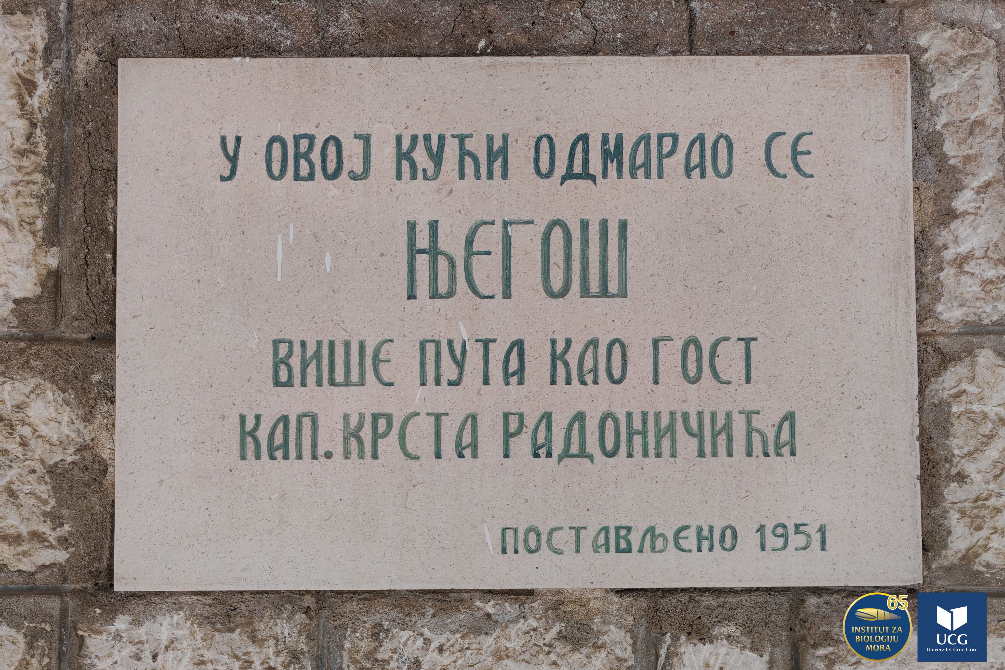 U svojoj crtici Anton Milošević zaključuje da bi bilo lijepo da se na palati Radoničić postavi spomen-ploča kojom bi se obilježili Njegoševi posjeti kapetanu Krstu. Konačno, 1951. godine postavljena je navedena spomen-ploča na sjevernom pročelju, gdje se i danas nalazi.