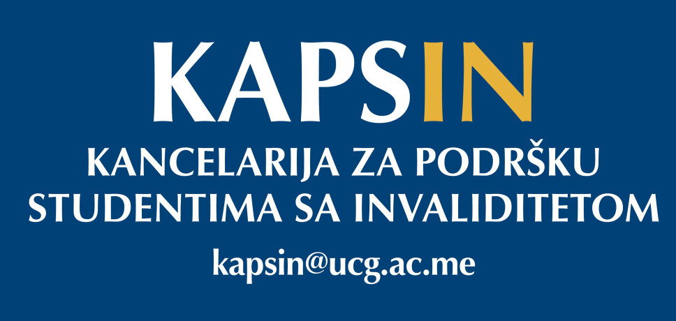 Kancelarija za podršku studentima sa invaliditetom (KAPSIN) predstavlja jedinicu u okviru Univerziteta Crne Gore koja je osnovana s ciljem da doprinese stvaranju ravnopravnog položaja za studente s invaliditetom na nivou visokog obrazovanja. Ovo najprije znači rad u pogledu praćenja stepena arhitektonske pristupačnosti fakultetskih jedinica kako bi studenti mogli nesmetano da izvršavaju studentske obaveze, zatim informisanje studenata o svojim pravima i obavezama propisanim Zakonom o visokom obrazovanju, kao i o drugim pravima koja su regulisana u okviru studentskog standarda. Pored toga, cilj Kancelarije je da unaprijedi praćenje i izvođenje nastavnog procesa u kojem svaki student ima mogućnost da na adekvatan način usvaja svoja znanja tako što će podstaći razvoj njegovih potencijala i mogućnosti, što u budućnosti doprinosi većoj konkurentnosti za izlazak na tržište rada.